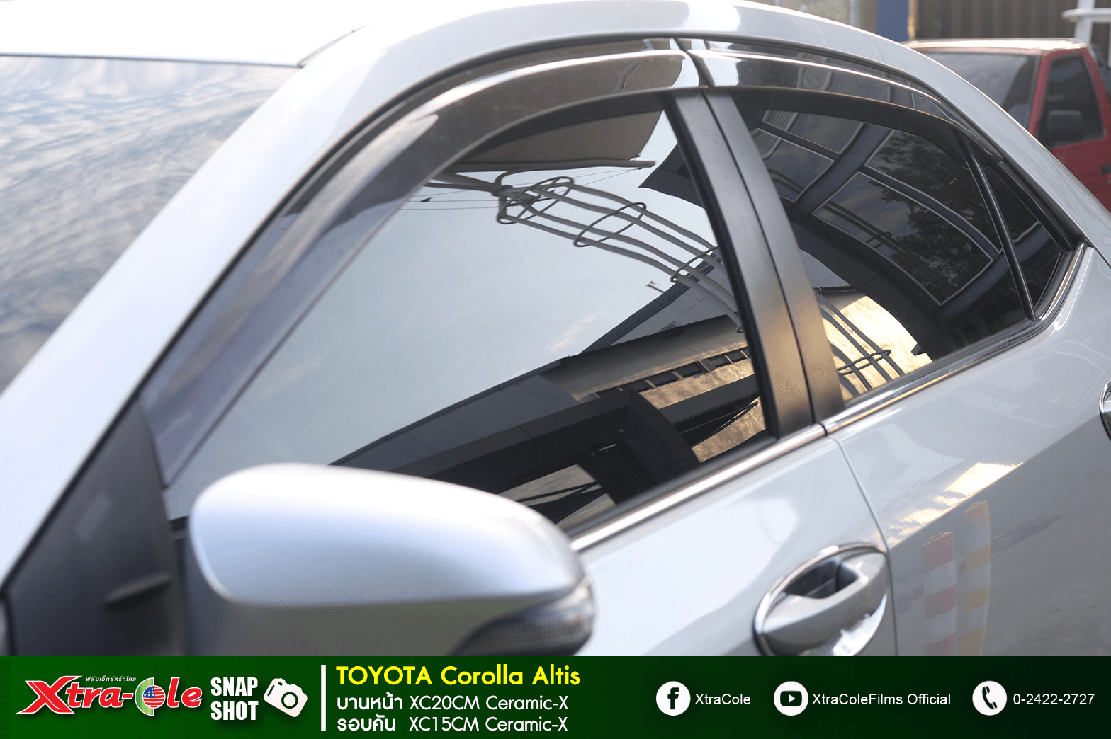 Toyota - บานหน้า XC15CM / รอบคัน XC20CM – คุณสมบัติ XC15CM และ XC20CM กันความร้อนจากแสงอาทิตย์สูง (XC15 : 72% / XC20 : 70%) , เข้ม.. ภายนอกแต่สว่างภายใน , เคลียร์.. ผ่านทุกสัญญาณดิจิทัล , ชัด.. เป็น 2 เท่าให้ทัศนวิสัยที่ดีในการขับขี่ , กันร้อน กันยูวีสูง