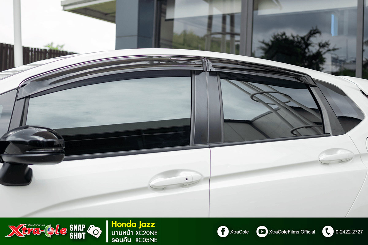 Honda Jazz - Xtra-Cole ‘X-Trend’ ฟิล์มสีสันธรรมชาติ...เพื่อผู้มีหัวใจแฟชั่น บานหน้า XC20NE (ความเข้มประมาณ 60%) / รอบคัน XC05NE (ความเข้มประมาณ 80%)