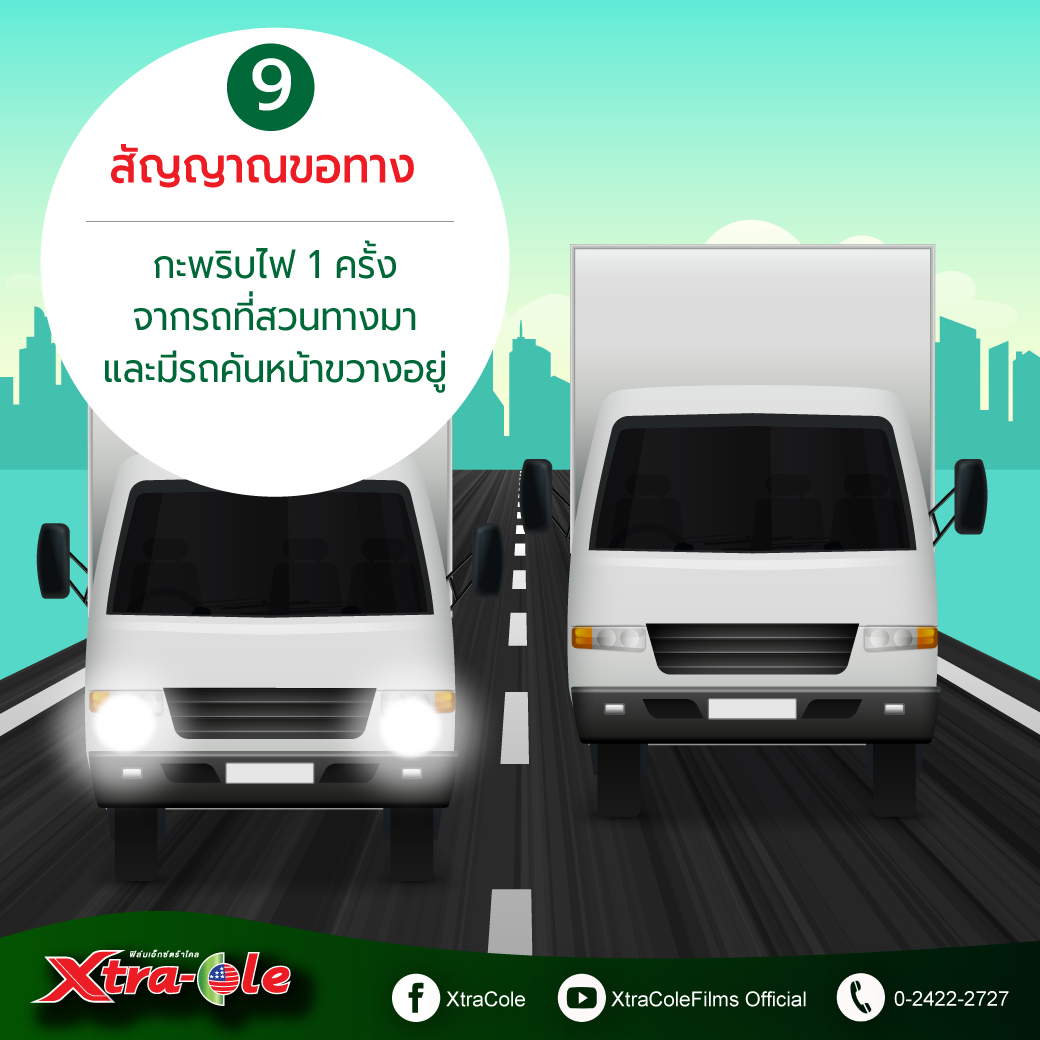 ดับไฟหน้าแล้วเปิดขึ้นมาใหม่ หรือ กะพริบไฟสูงสั้นๆ ในขณะที่วิ่งสวนทางมา